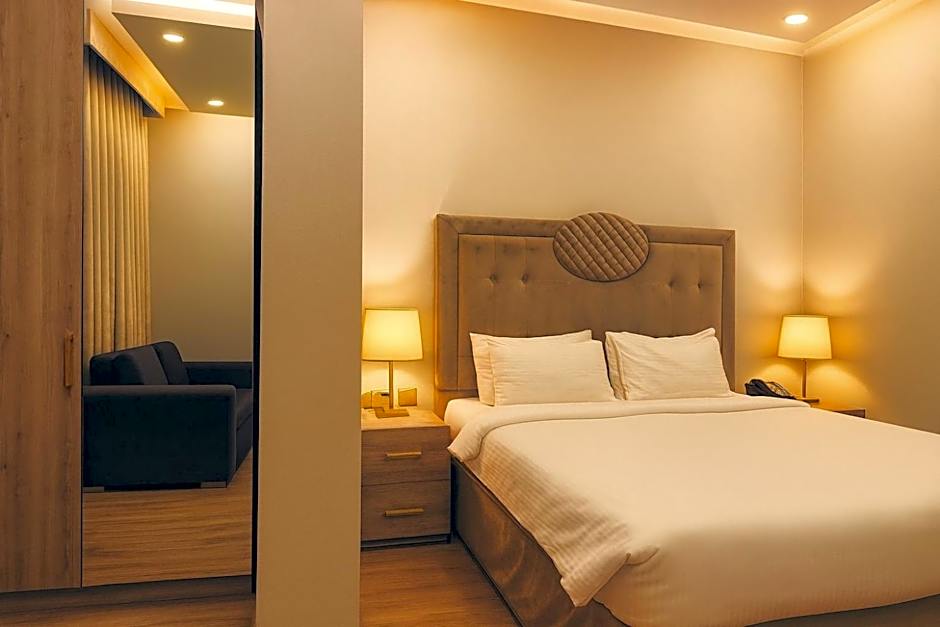 The spacious double room provides air conditioning, soundproof walls, as well as a private bathroom featuring a walk-in shower and a bidet. The double room features carpeted floors, a seating area with a flat-screen TV with satellite channels, a mini-bar, a tea and coffee maker, as well as a wardrobe. The unit offers 1 bed.